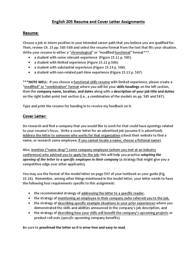 Resume Cover Letter Assignment - Main papers 1a resume and cover letter:. Open a blank word document or a publisher template (if you used publisher to create your resume and want the resume and cover letter to have the same format/graphics) 2. Resume and cover letter overview using an actual job listing from a company in your area of interest, you will create a job application letter and a resume. Additionally, once you've completed your resume, you can download a pdf of your final resume… Locate a position you would apply for in the next six months or an internship that is related to your major/career interests. View formal assignment resume and cover letter.docx from theatre 210 at american university of beirut.